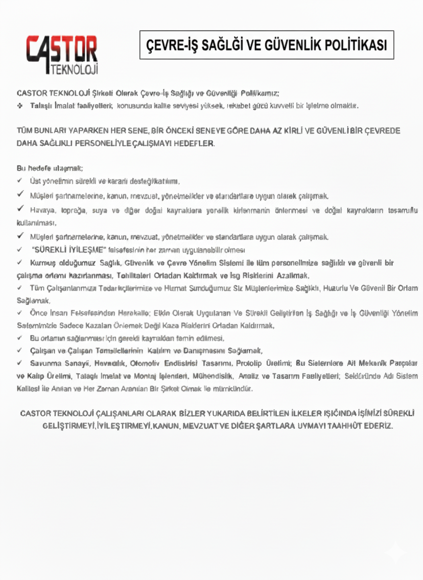Çevre, İş Sağlığı ve Güvenliği Politikası