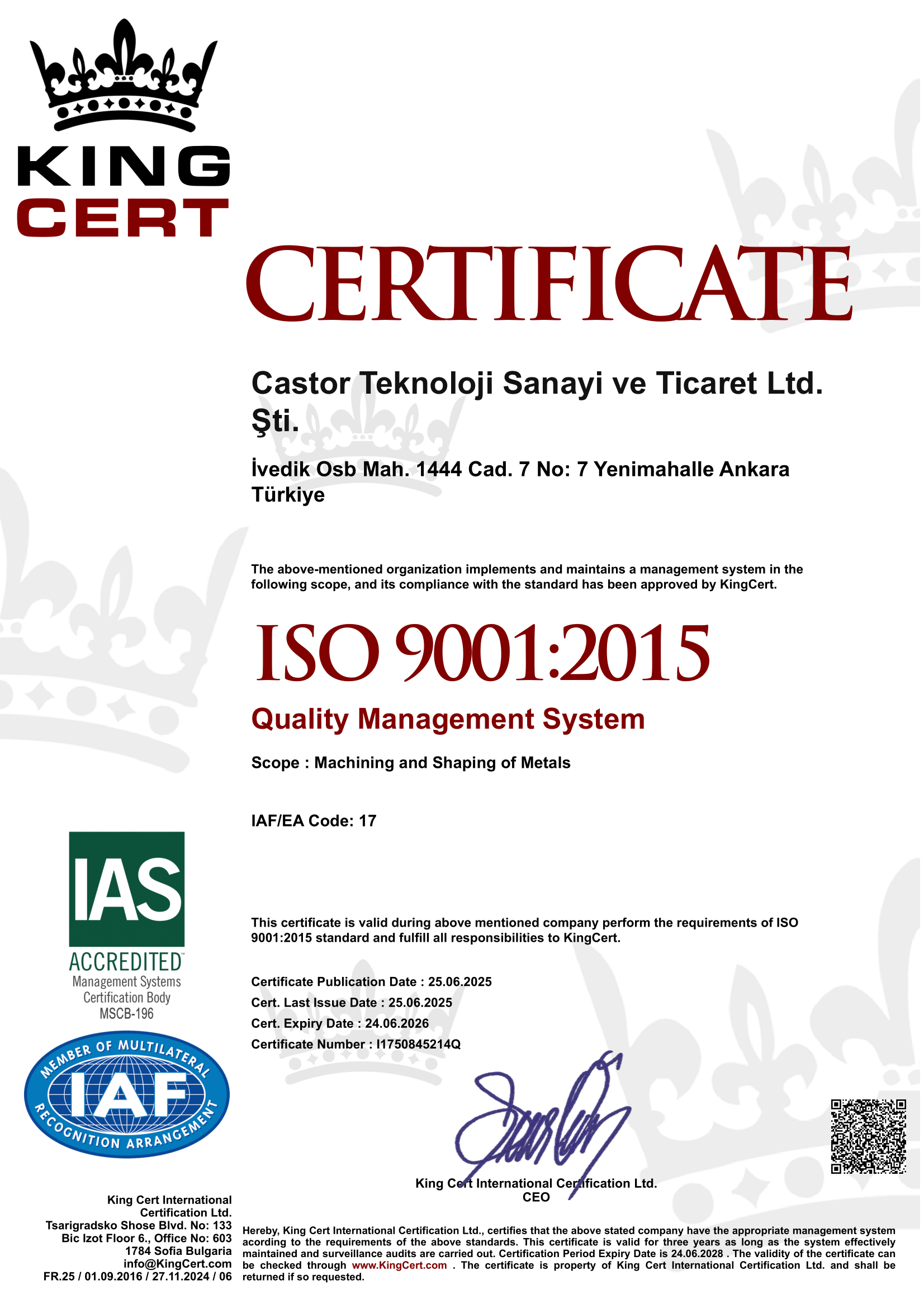 Certificate Publication Date : 25.06.2025